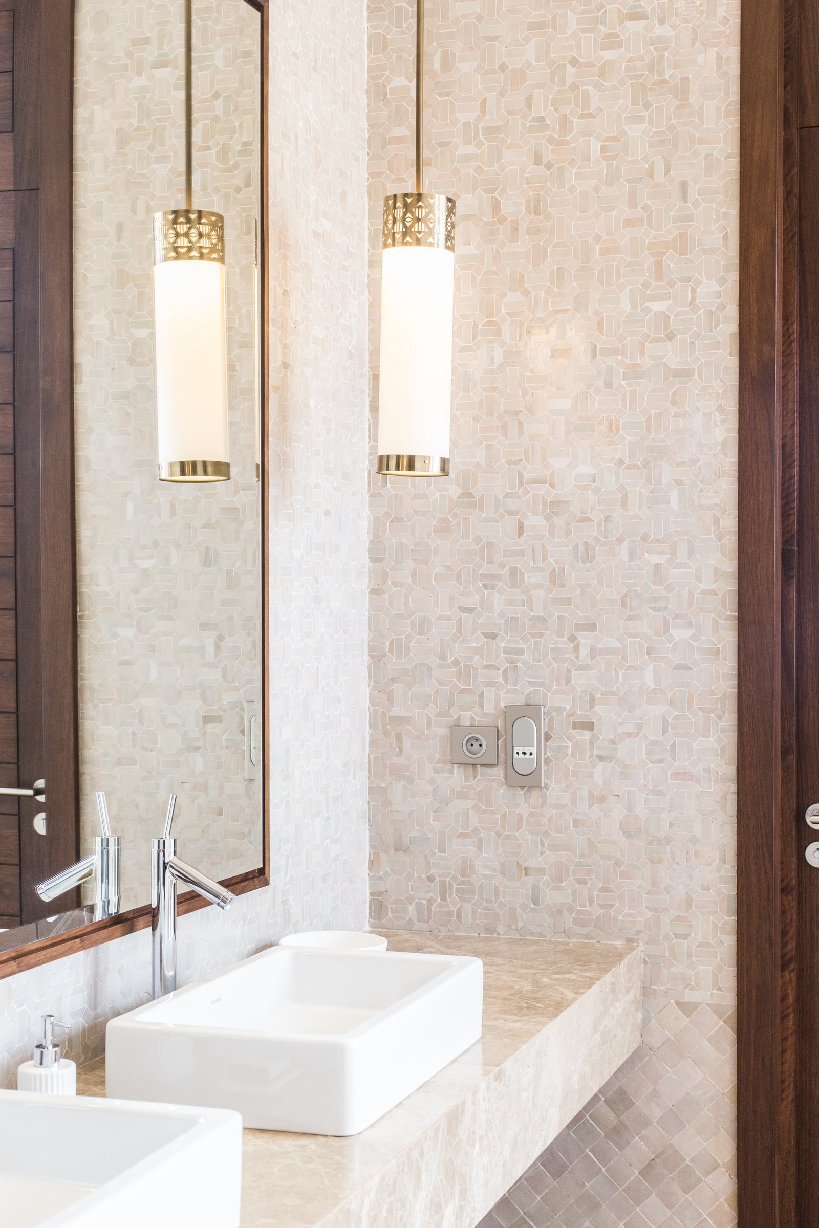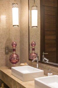 Zellige, also known as mosaic tile, is made from individually hand-cut and hand-glazed ceramic pieces. These pieces are then carefully arranged to form mesmerizing geometric patterns. The result is a stunning display of artistry and craftsmanship that can transform a simple washroom into a work of art.